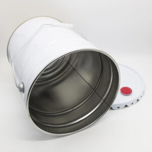 This Round Paint Tin Can with 20 Litre / 5 gallon capacity. Its conical shape makes the buckets stacked one by one, which saves container space, facilitates transportation and saves long-distance expenses. Usually, there are 3 types of the lids, including flower edge lid, curly edge lid and lock-ring lid. For the convenience of pouring some liquids, we can also install a small cap on the large lid. Just tell us your content and design.